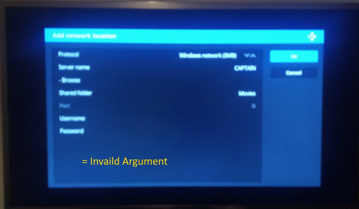 (Yet again) I tried to add thus pc via the SMB share thingy, but without adding in the share folder name. The error window "connection refused" popped up. I also tried including adding the log-in for the Kodi user for this pc. I guess that means that it's at least trying to connect to this pc, right?