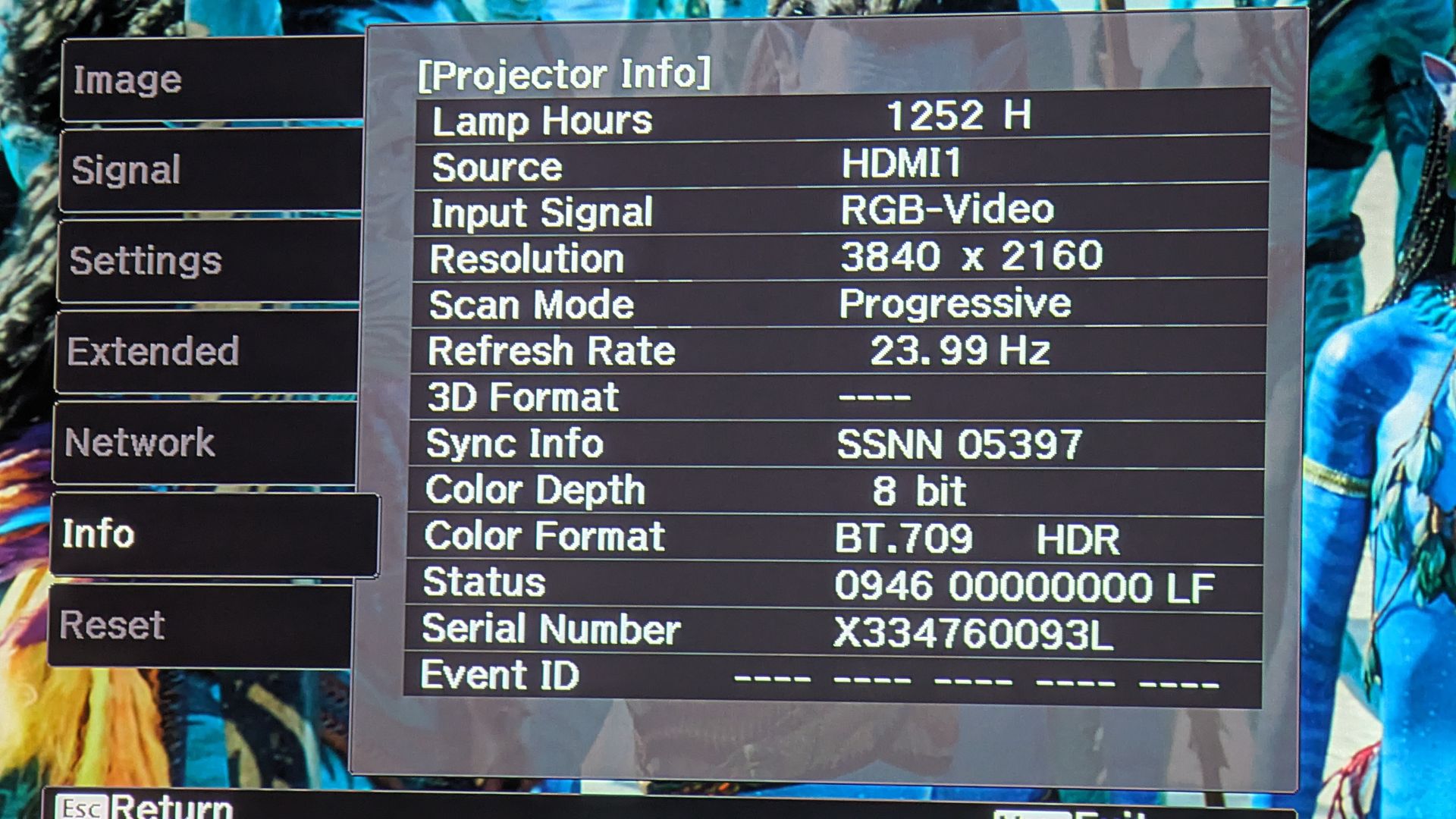 So because the BT2020 mode on the projector is dependant on the meta data being sent, it won't go there automatically. I also can't save a memory preset with that colorspace set in the projector, which would have made it a bit easier to go back and forth. So I am forced to flip the mode manually whenever I want HDR content. That sucks but the HDR collection is small so far.