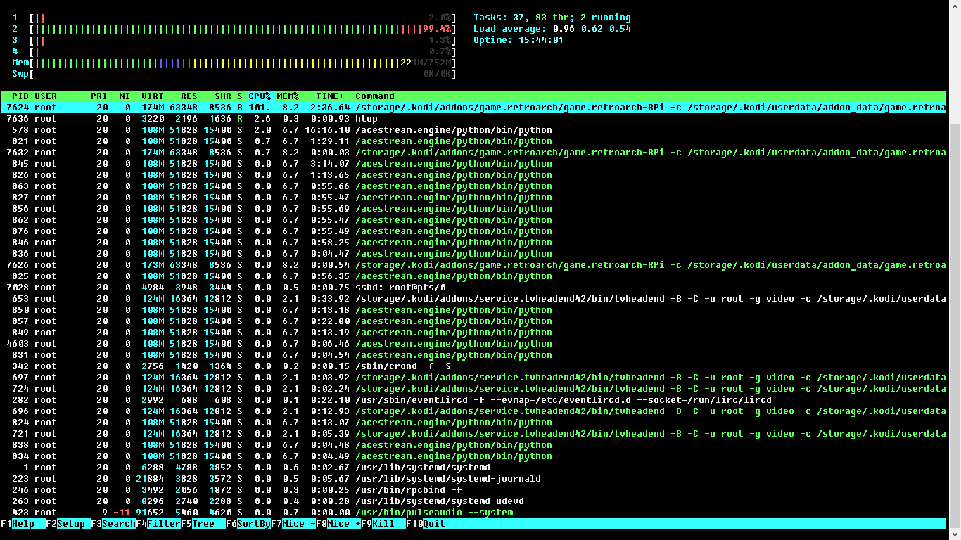 but services (e.g. TVheadend Server) not start