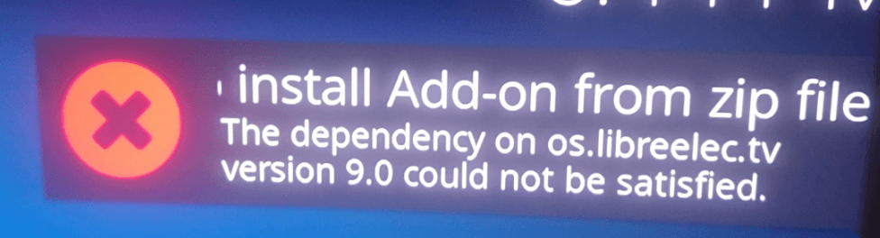 Hi afl1, same problem here. Please check image attached in last version of libreelec (8.2.2.3): "the dependency on os.libreelec.tv version 9.0 could not be satisfied".
