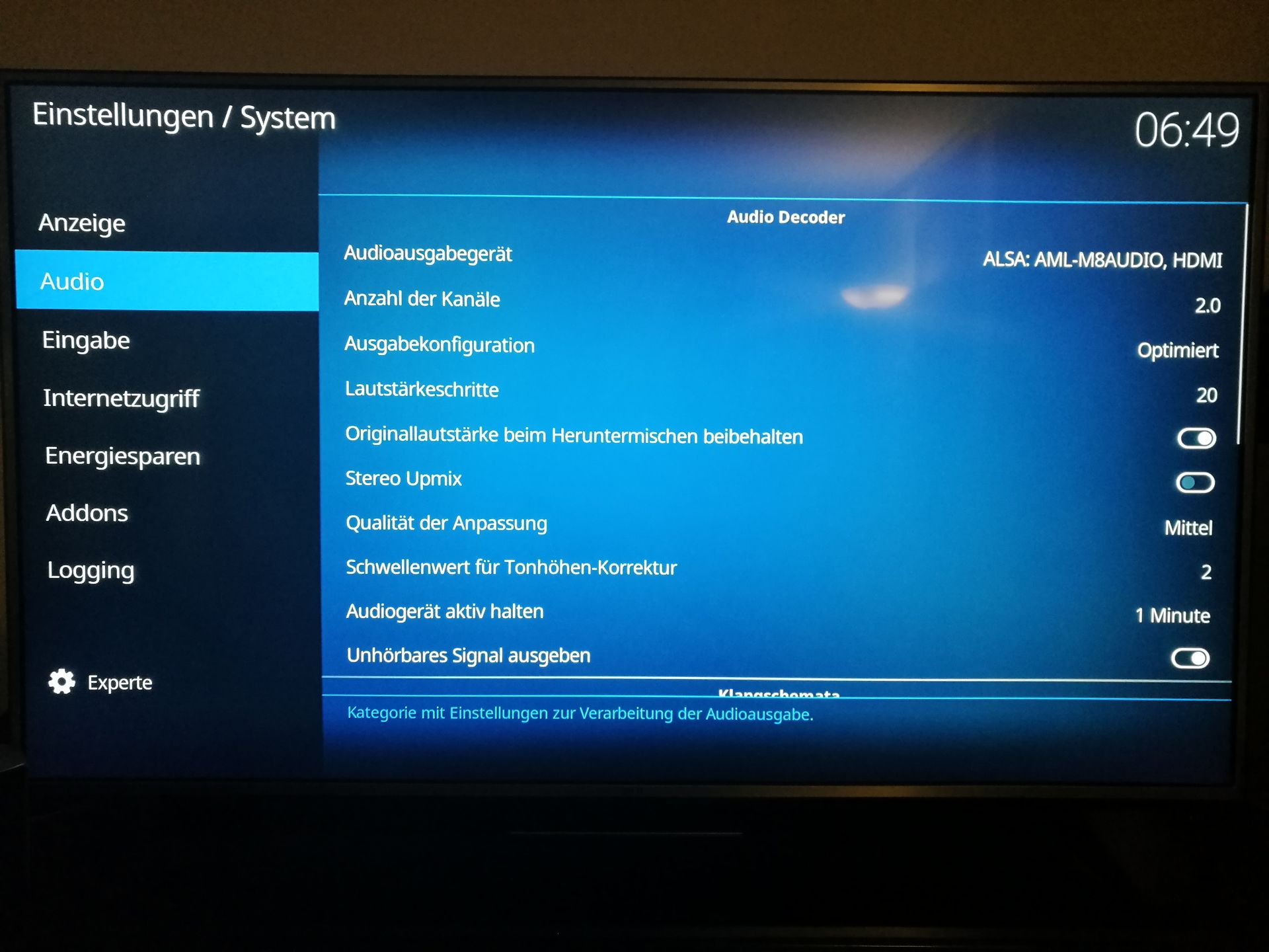 - no audio for stereo streams if the audio device is set to "AML-M8AUDIO, HDMI"