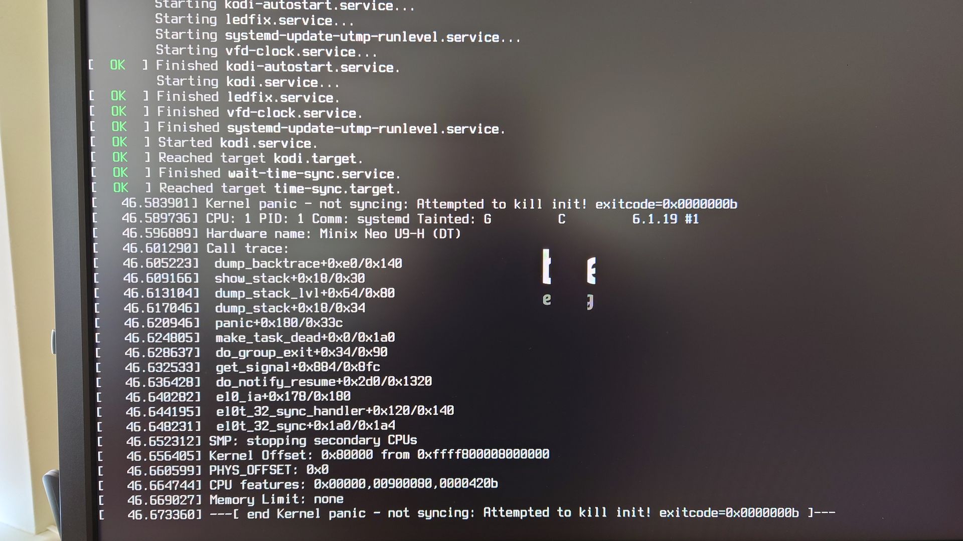 But "systemctl start kodi" crashes system and ends up with kernel panic.