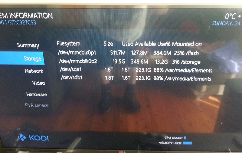 Also find attached a copy of the screenshot of the STORAGE screen from my Rpi2 LibreELEC. When mounting the first drive, the message comes up on the home screen, it does so again with the second drive, but it seems to see the second drive as identical to the first drive?
