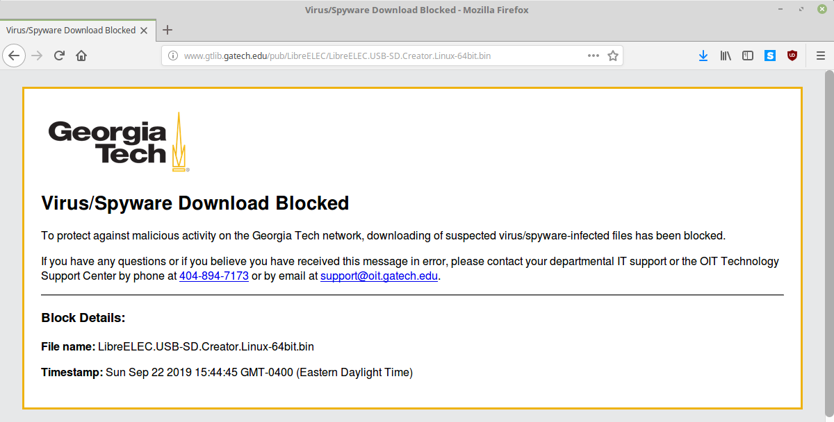 My best guess is that one of the mirrors for th eproject resides on a gatech server, and it got caught up in some overly zealous geatech IT department security program.