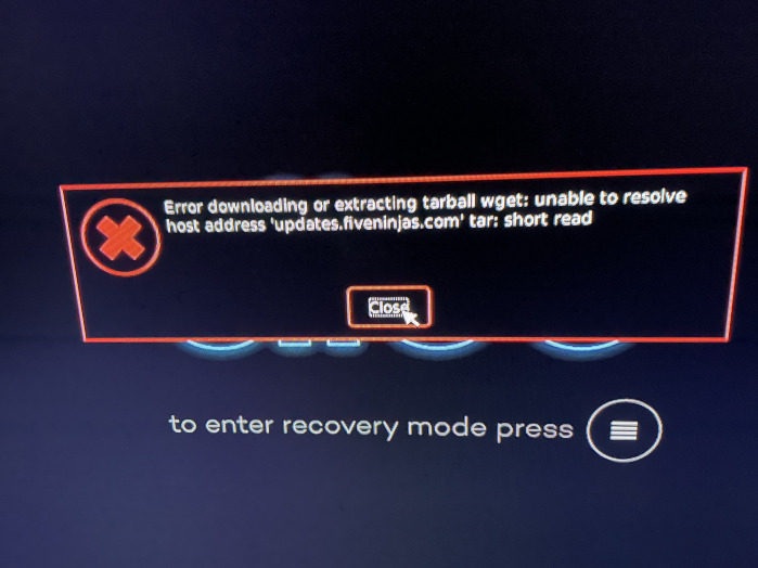 Hi, i wanna reset my hole Slice. I entered the Recovery mode and wanted a clean System. But then this Message appears. Is there no "local" reset possible the orig. ninjas website is probably offline.