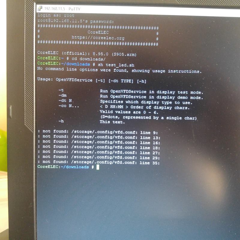Codeecho "OLD_PATH=$PWD" >> /storage/.config/autostart.sh echo "cd /storage/downloads" >> /storage/.config/autostart.sh echo "sh test_led.sh" >> /storage/.config/autostart.sh echo "cd $OLD_PATH" >> /storage/.config/autostart.shFor the icons (wifi, ethernet, etc.) enable the OpenVFD Kodi Addon.