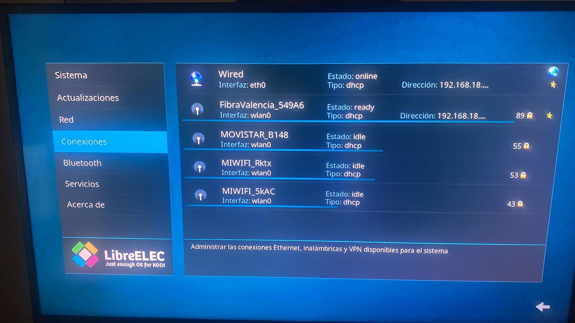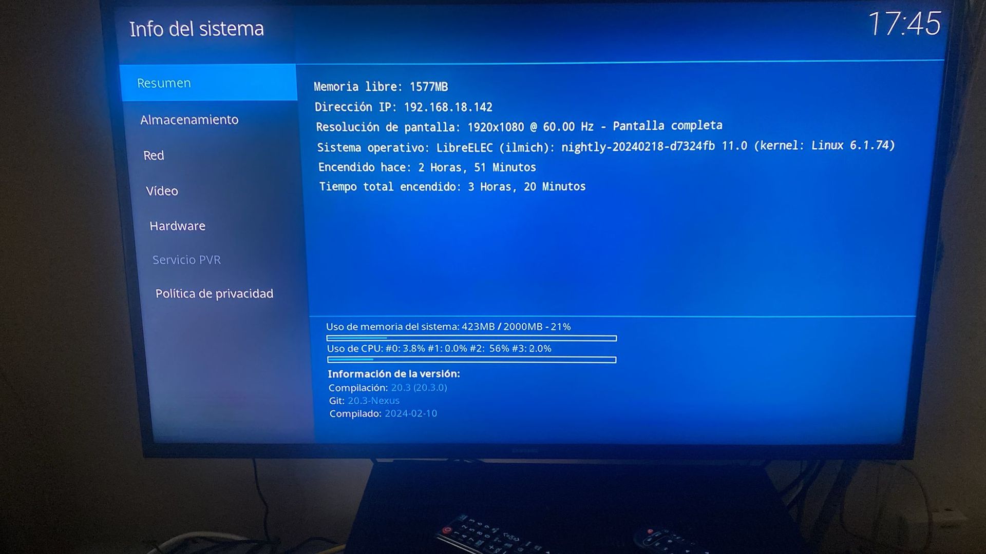 Once everything is set up, the speed of the TV box is either very good or quite slow. It struggles to navigate through different parts of LibreELEC and takes time to open addons. I must also mention that if I install Kodi on Android, it seems to run more smoothly. However, I encounter a problem because Ethernet doesn't work on Android, while it does work on LibreELEC.