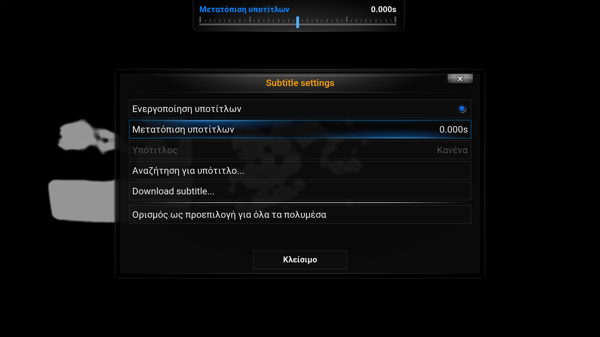 The window that pops up when you play a video file and press the subtitles button -that offers options for downloading, synchronizing or changing the subtitles- does not go off when synchronizing or downloading is selected.
