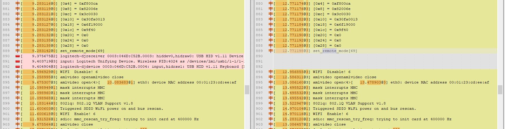 Comparing the dmesg in the image on the left is the version with the remote control working (MXIII Plus), on the right no (n200), but the external keyboard even if I don't see it at that point works with both.