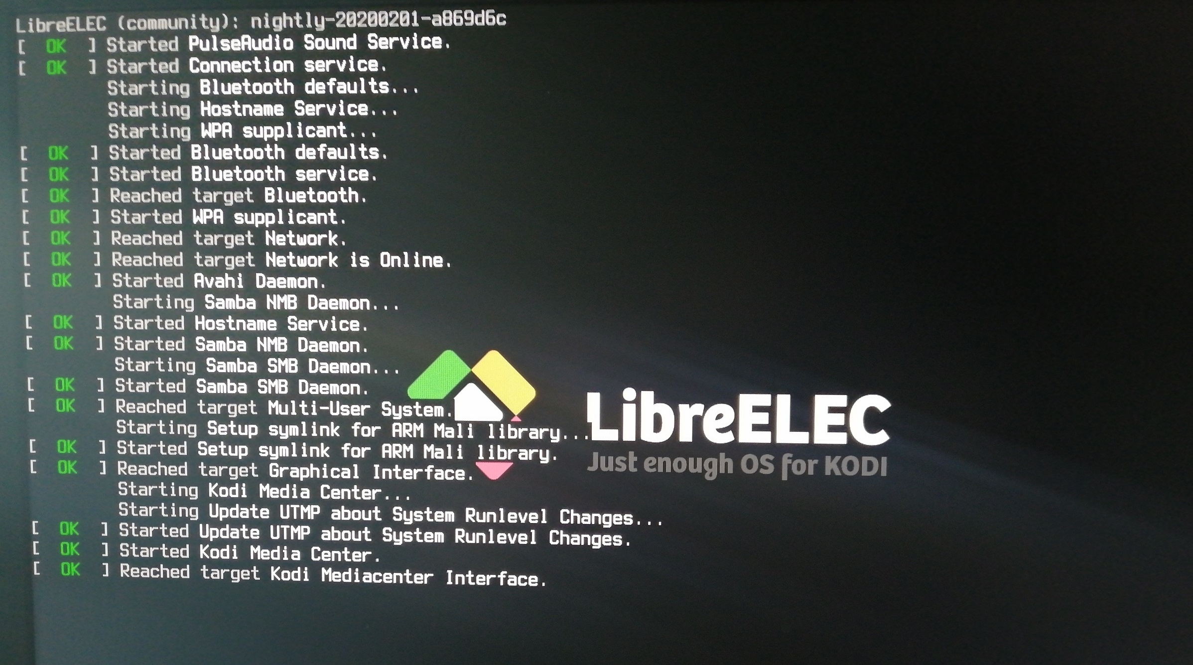 3) I scanned ports and I do not see ssh 22 port (I want to login to look at logs) Ok, added 'ssh' to extlinux.conf and logged in with root/libreelec