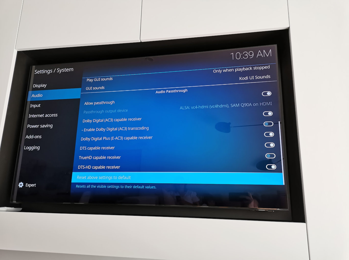 So I setup libreelec on RPI3B to try play DTS media files but with no success. I have previously used this setup to play dts media files with my old tv and same soundbar.