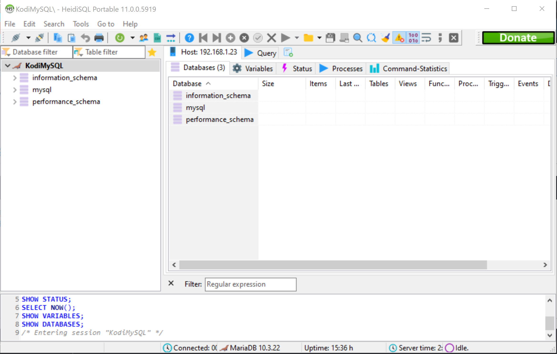 2019-04-11 12:28:42.028 T:2875597680   ERROR: Unable to open database: MyMusic72 [2002](Can't connect to MySQL server on '192.168.1.23' (101))