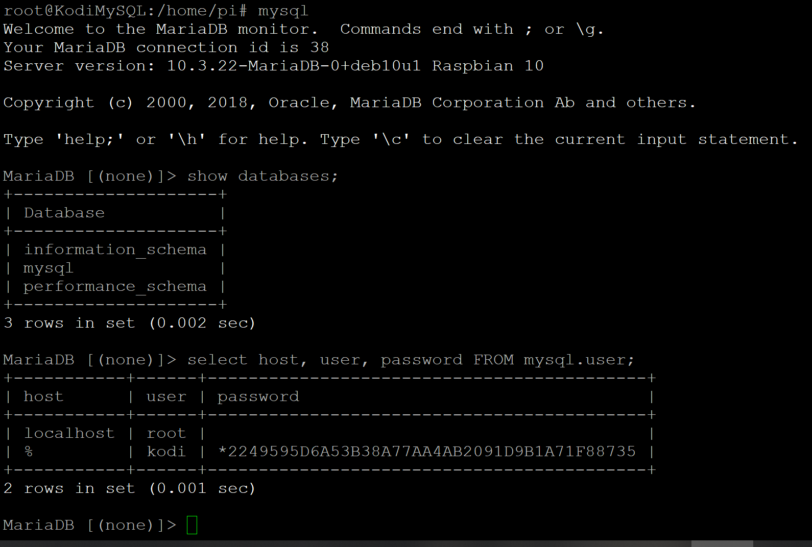 I built a raspbian buster on a RPi3 running MariaDB 10 and I cannot get either of my RPi4's to connect to the DB.