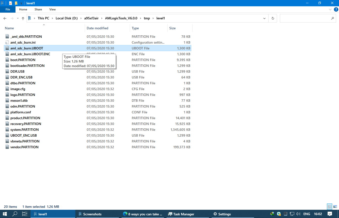 I dont know how to get the uboot file from my image,when I unpack the image using level 1 I get the following files :<picture>.