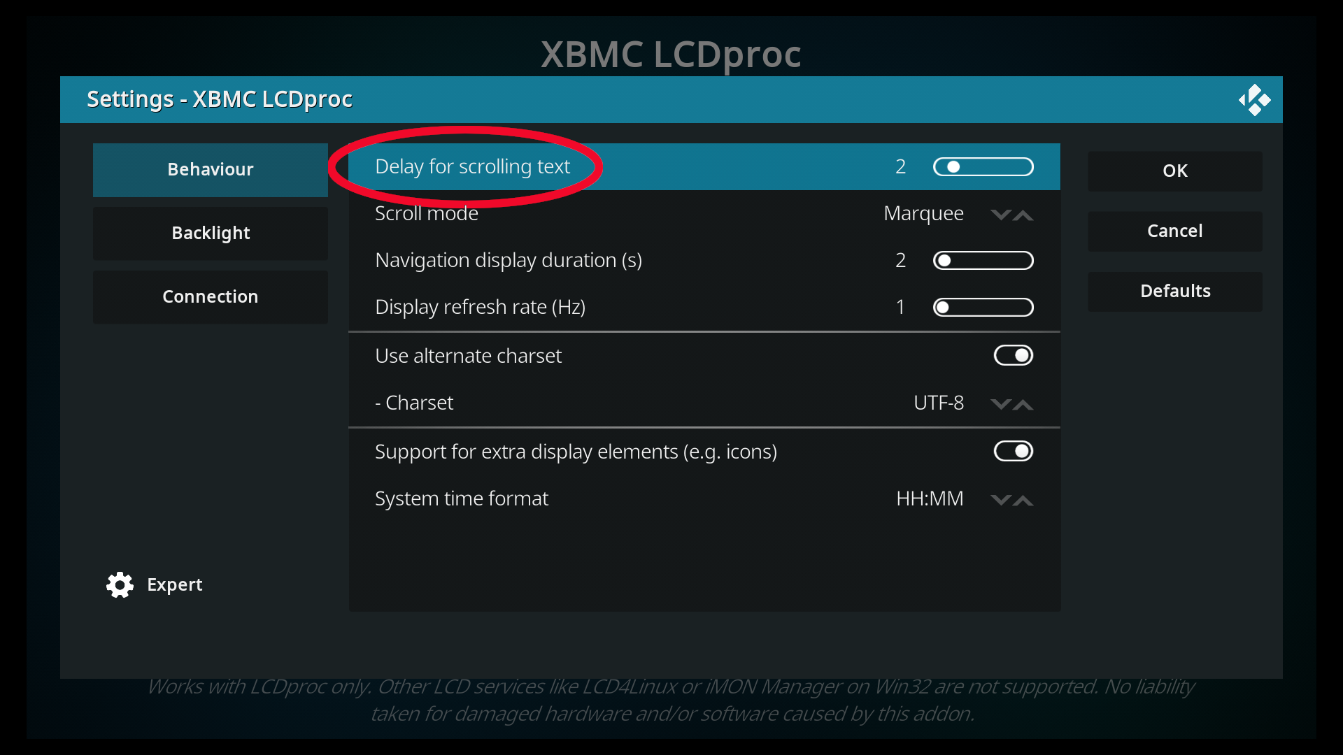 6) The change on the display will take place immediately (the add-on will automatically restart)