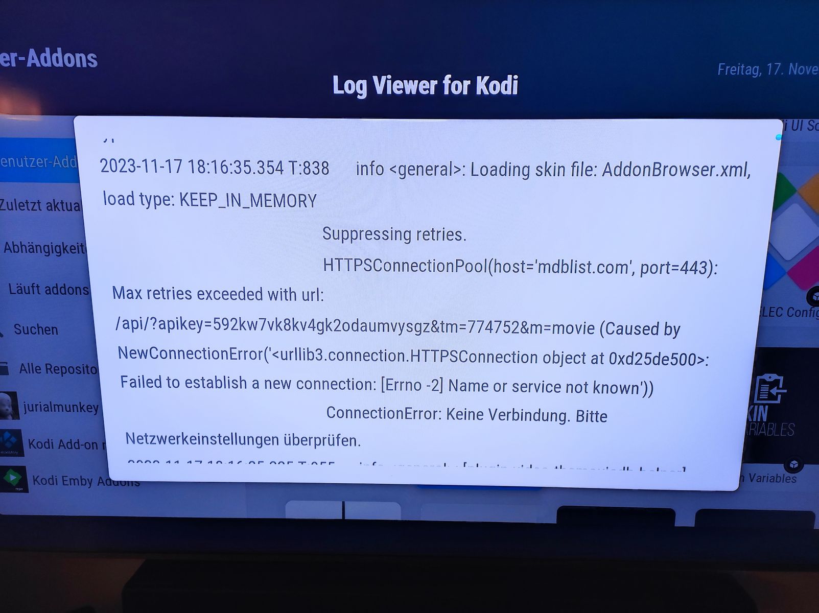 Now I had the time to update to the current version (of course clean install) and everything works great, except a few error messages regarding a connection error with different services: Trakt, TMBD,... (see attached picture)