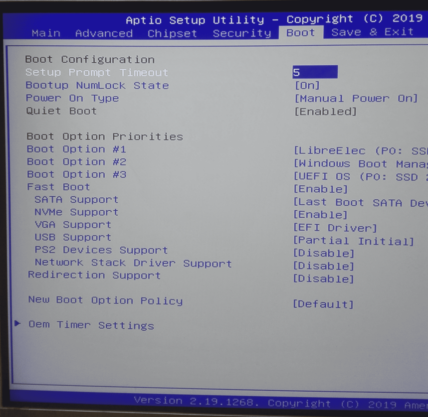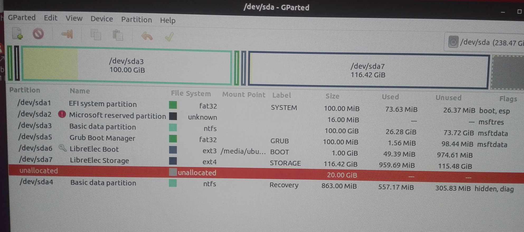 I followed the instructions. But my Beelink X55 has Win10Pro preinstalled. so I booted Ubuntu and created with gparted sda5 (for GRUB) sda6 (LibreElec Boot) and sda7(LibreElec Storage). my sda1 is the Win bootloader, this seems to be the difference to this manual, so I changed the grub.cfg to set root='hd0,gpt1' in the Windows-menuentry