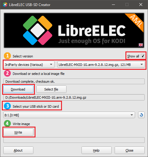 ^ If everything went well, you can't paste the last line, because LibreELEC starts after run startfromsd.