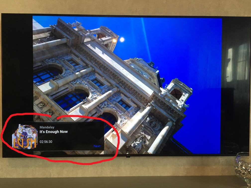 I usually start some audio, most often it is SomaFM plugin and then I start picture slideshow.The problem is Kodi sometimes shows this "now-playing" audio banner and I can't hide it. I searched through settings and I can't find any related option and I can't find any related button or hotkey that would hide it. Googling didn't help either.