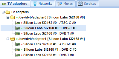 On TVheadend is shows the cards, but i not able to get any frequence, just fail all the Muxes scan.
