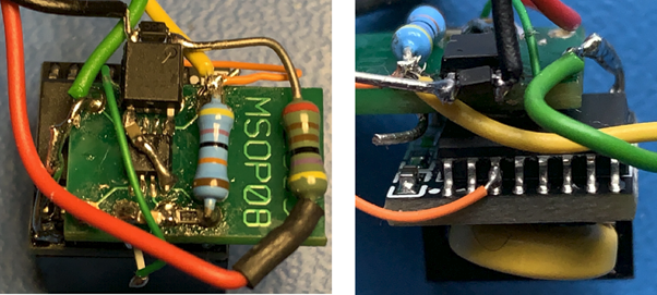In the above pictures the red/black wires go to the TV 5V USB connector and the thicker green/yellow wires to the momentary wake-up switch.