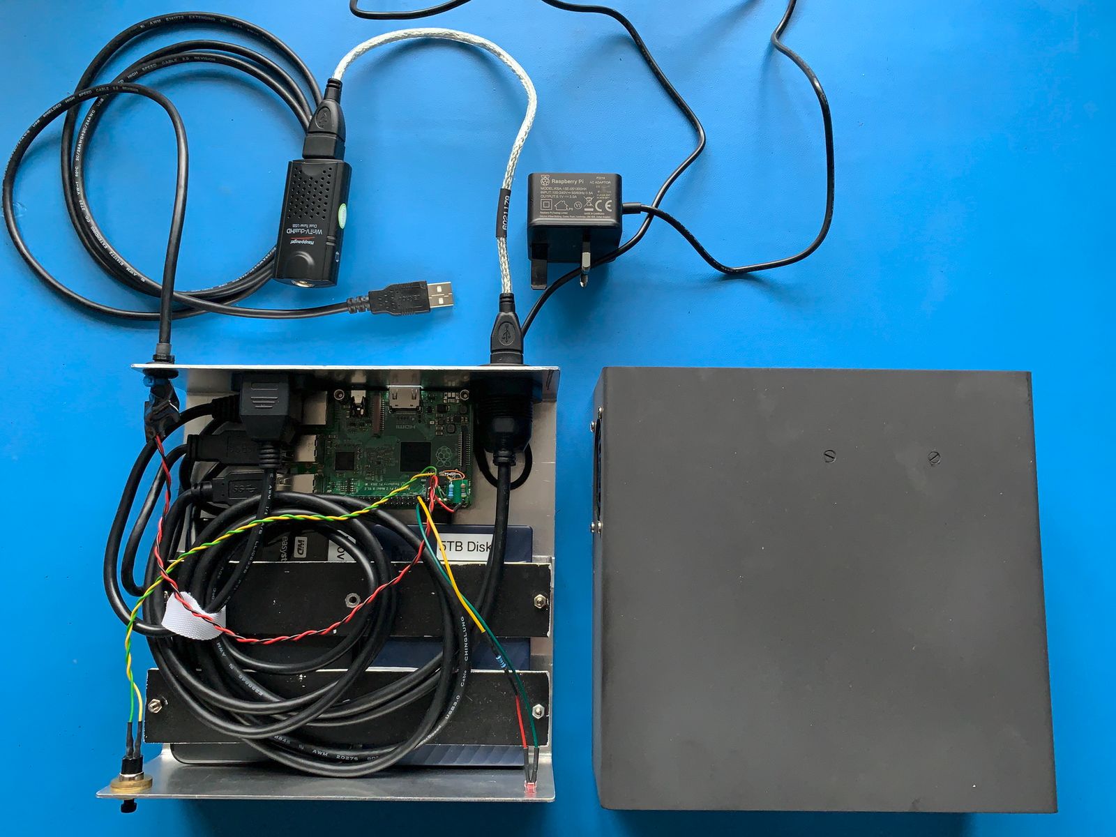 To power/use two WD 5TB 2.5” hard drives and a Hauppauge WinTV USB Dual HD TV Tuner (to watch record TV via TVHeadend) directly from a Raspberry Pi 2B the USB current limit needs increasing. By following: