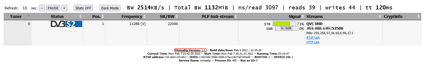 The problem is just cosmetic. minisatip doesn't show the full version number in the status web page (see red frame):