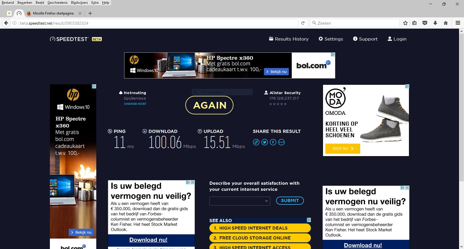 Second time I tried it I was connected to a dutch host Altushost...4mbps, but each time when connected to the Toronto host >23Mbps and each time connected to a Dutch host<10Mbps