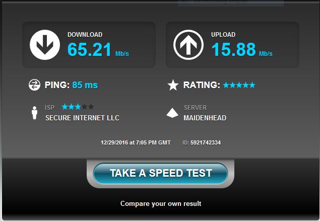 The First time I loaded an UDP port 53 OVPN file, I typed in the login details....and it was connected to a host in Toronto...I performed a speedtest: 25Mbps