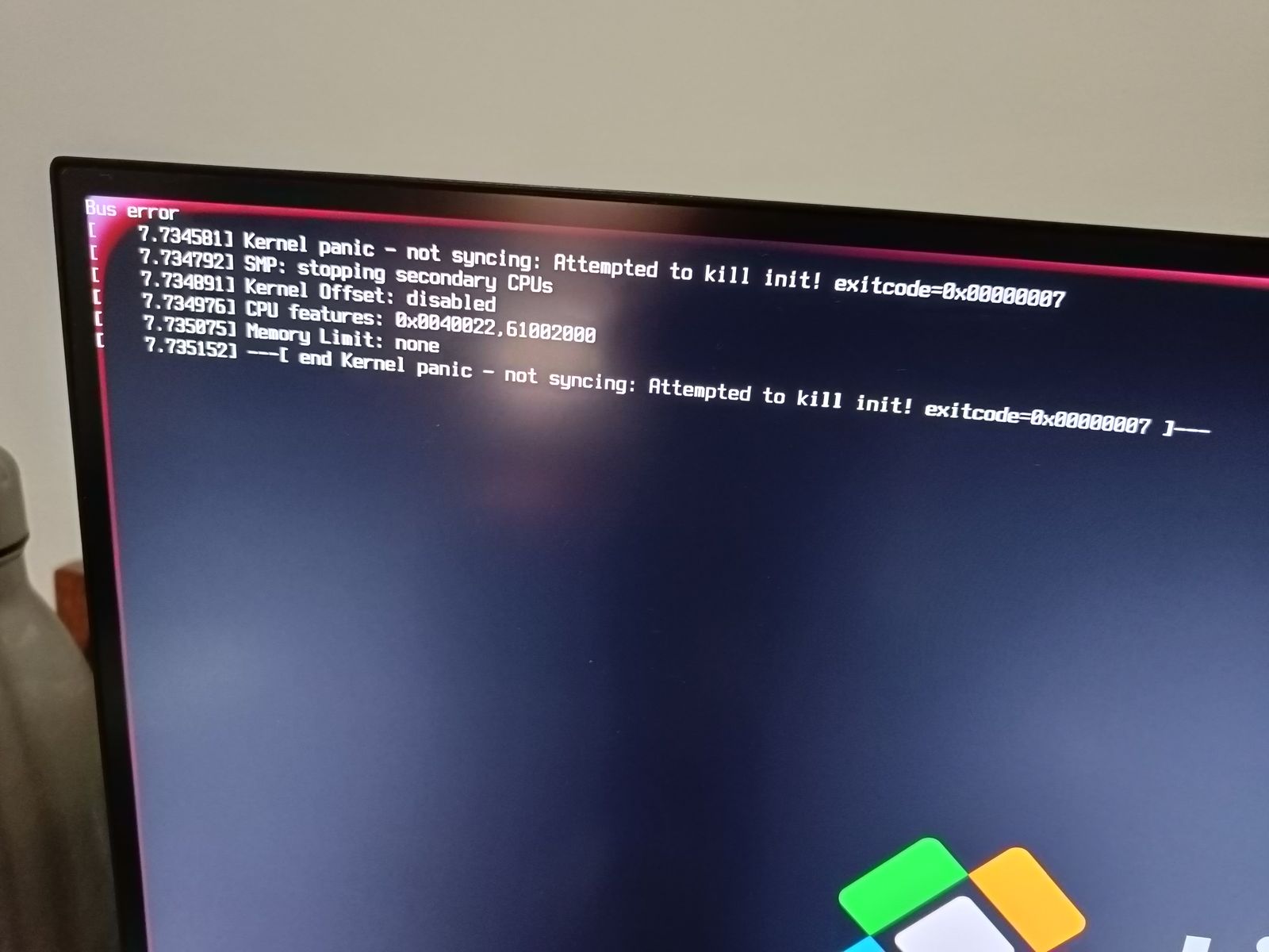 I am also getting kernel panic error: Please see the attached image