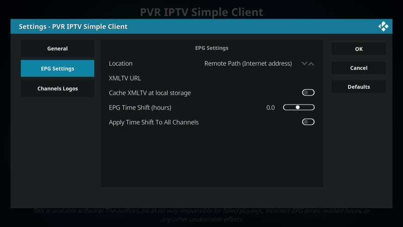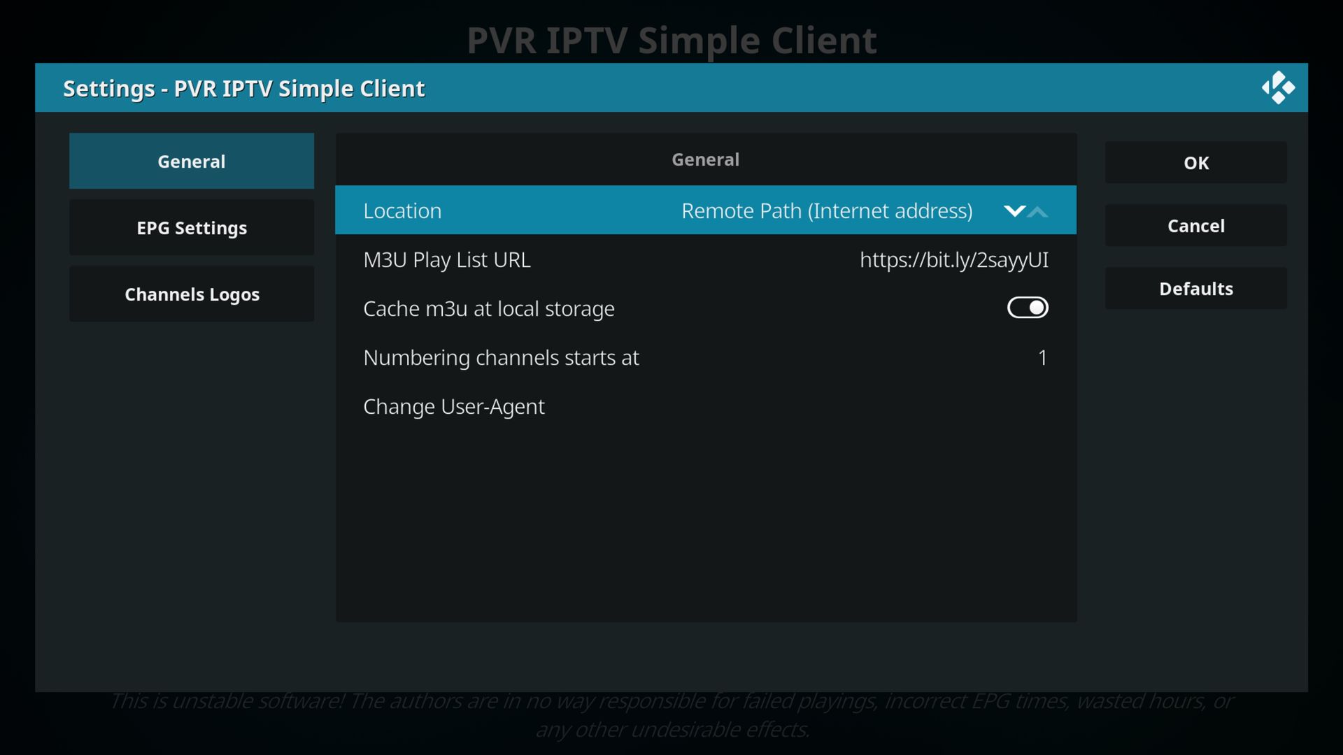 Installed only the IPTV Simple Client with newest version available and set "Connect to Network before starting Kodi".