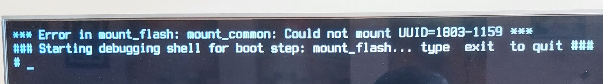 *** Error in mount_flash: mount_common: Could not mount UUID=1803-1159