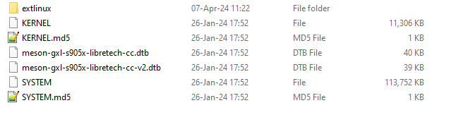 1st image is the beneric files on sd and 2nd image is the Le Potato files on SD.
