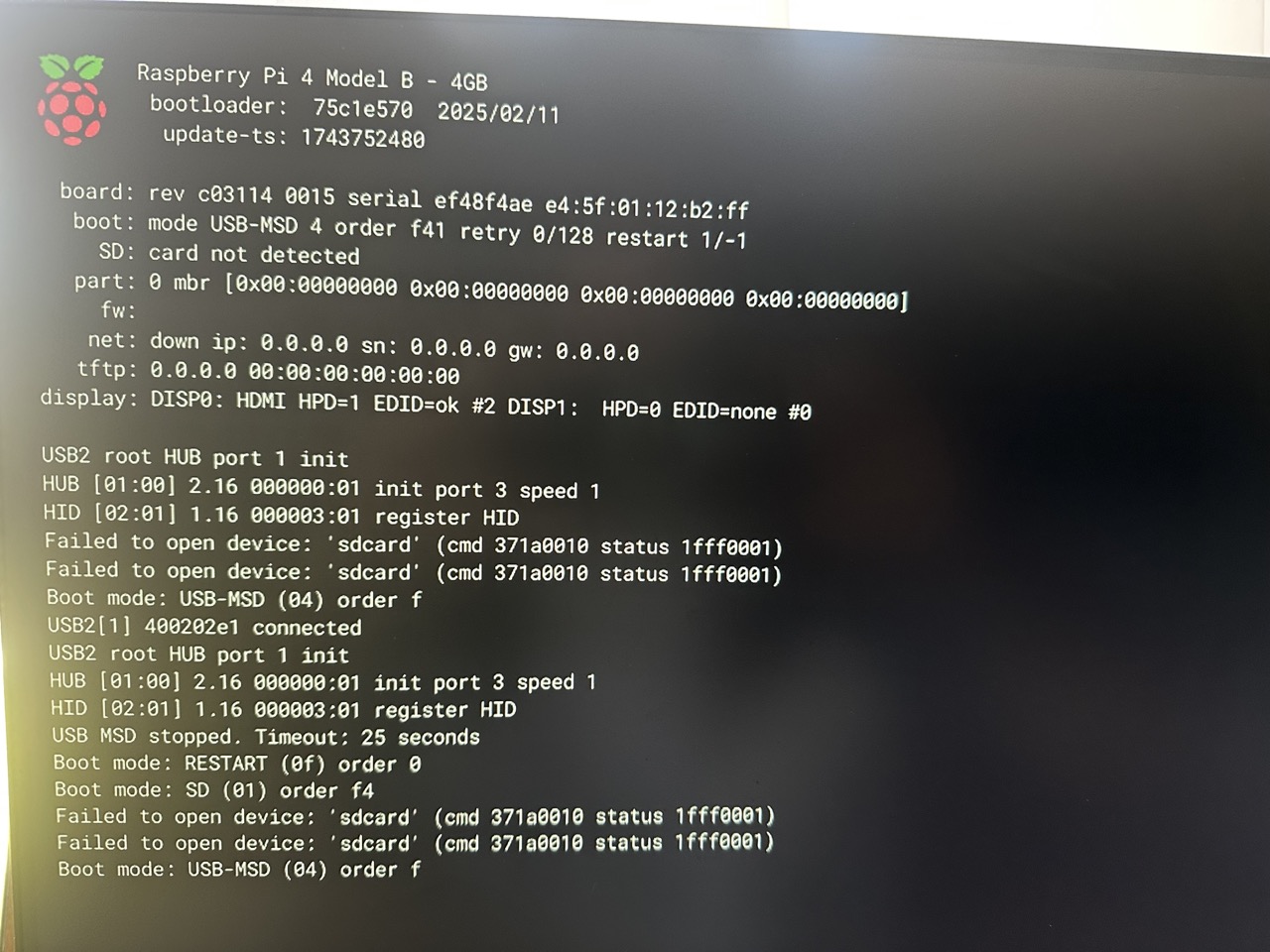 I downloaded newest RPI4 raspberry PI os, install on SD card and updated bootloader too.