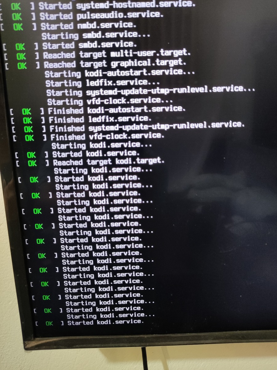 The box booted, but couldn't start the kodi service.