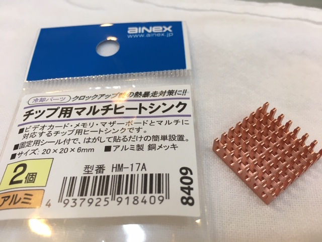 Now for the heatsink: Locally, I found a small, fairly lightweight, copper heat sink (20x20x6 mm). With just that guy, the max temp (gputemp / cputemp) I’ve reached by just playing videos is about 52°C. While playing video AND updating a large library over the LAN, the temp leveled out at 60°C.