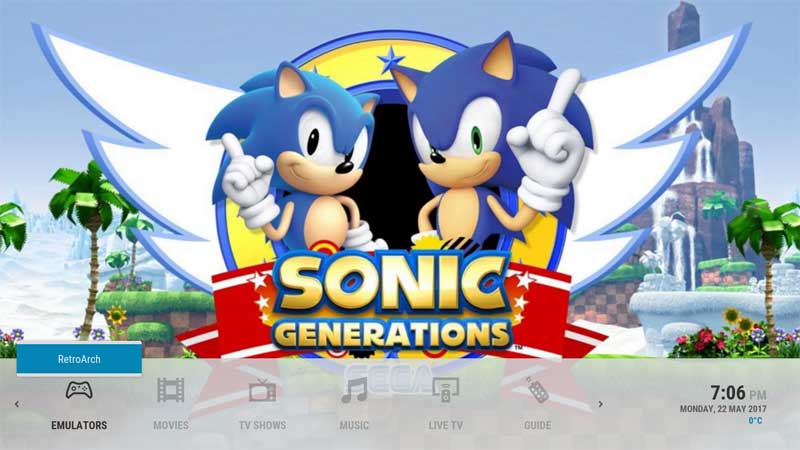 Then add a submenu under Emulators called RetroArch with custom command = XBMC.System.Exec(/usr/bin/retroarch.start)