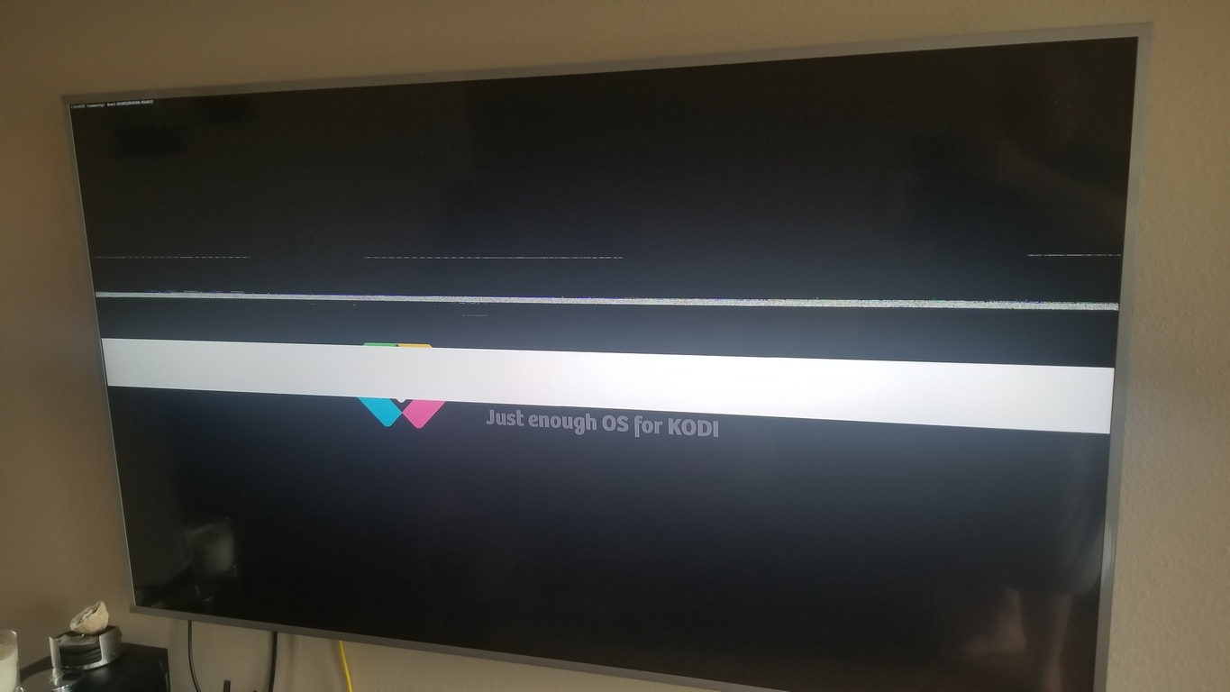 Still the same thing. installer is not responsive, has the exact same line through the screen as above. I reinstalled one of Millhouses test builds and copied the new file in the update folder. Boots to the same Librelec logo with the lines through it and reboots after 20 or 30 seconds.
