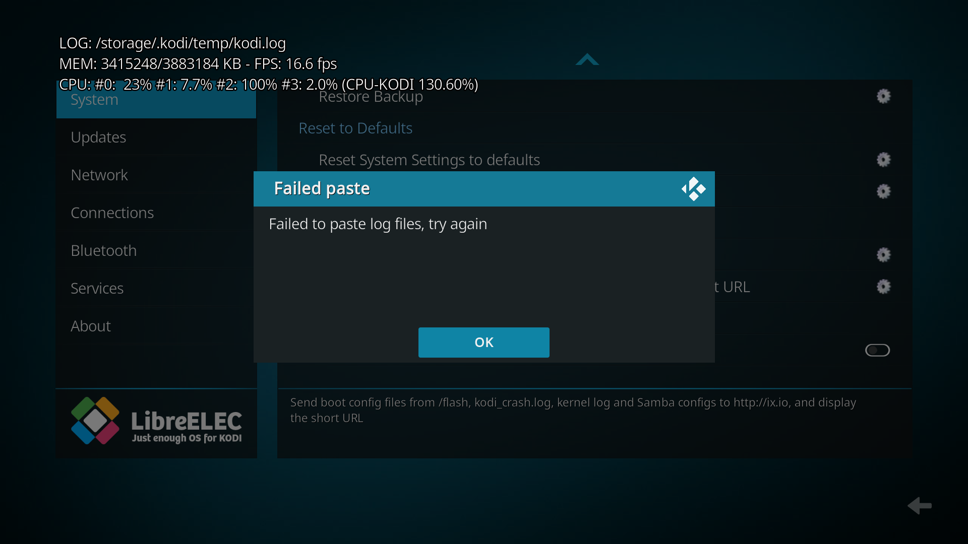 use "Settings > LibreELEC > System > Paste system logs" or run "pastekodi" over SSH, then post the URL link