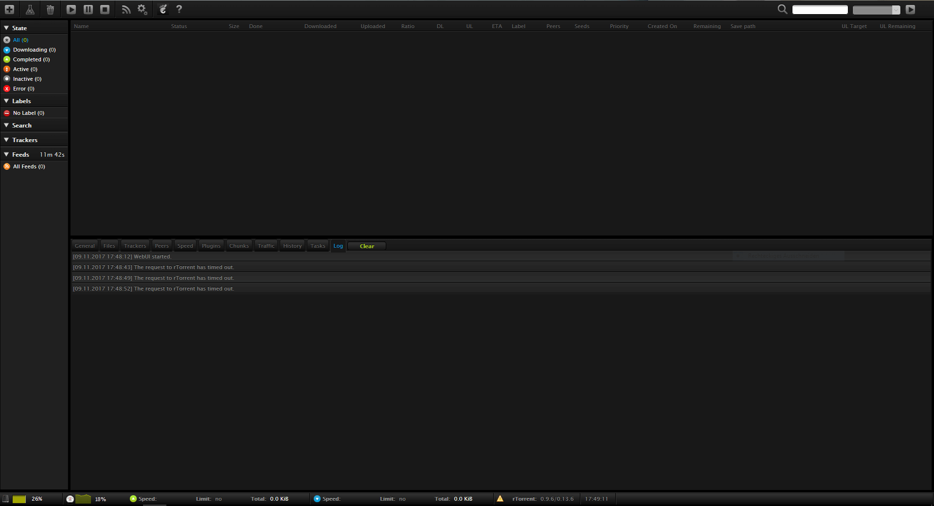 The request to rTorrent has timed out.