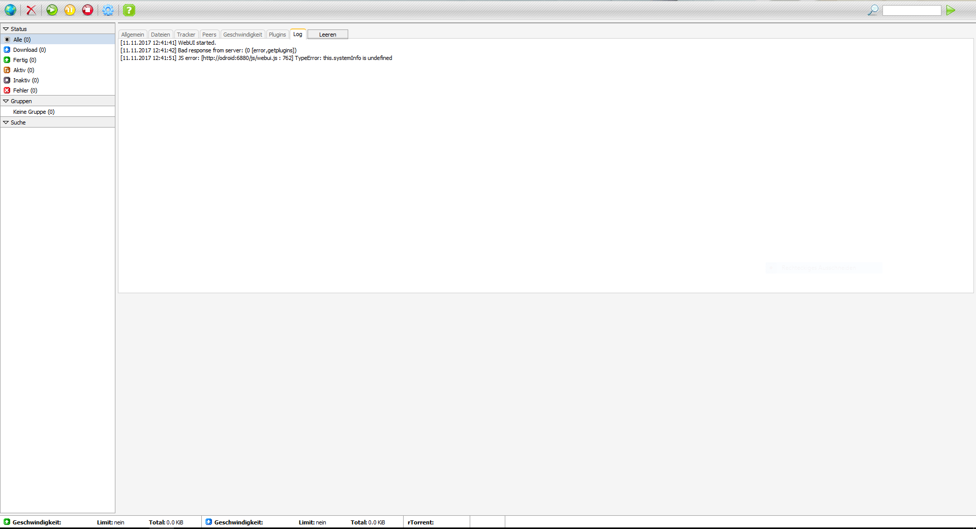 [11.11.2017 12:41:42] Bad response from server: (0 [error,getplugins]) [11.11.2017 12:41:51] JS error: [webui.js : 762] TypeError: this.systemInfo is undefined -