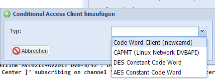 Display More[list] [*]2016/06/20 18:21:01 1C28088B c (ecm) wetek (098C@000000/0641/EF10/9D:B2ABBD48543A2D1375FF7A3427DD5762): found (285 ms) by Diskstation - RTL HD [*]2016/06/20 18:21:11 1C28088B c (ecm) wetek (098C@000000/0641/EF10/9D:F9E0BB4E1442BD14884F14119F9C740E): found (232 ms) by Diskstation - RTL HD [*]2016/06/20 18:21:21 1C28088B c (ecm) wetek (098C@000000/0641/EF10/9D:3BCB08F250B05EF2AB109CFEE70B1276): found (151 ms) by Diskstation - RTL HD [*]2016/06/20 18:21:31 1C28088B c (ecm) wetek (098C@000000/0641/EF10/9D:B1B9389FE8194CE4DDD70B219C886120): found (171 ms) by Diskstation - RTL HD [*]2016/06/20 18:21:34 1C28088B c (ecm) wetek (098C@000000/0641/EF10/9D:B1B9389FE8194CE4DDD70B219C886120): cache1 (0 ms) by Diskstation - RTL HD [*]2016/06/20 18:21:41 1C28088B c (ecm) wetek (098C@000000/0641/EF10/9D:BD53D0F23252A890275E6B03280BD3C4): found (165 ms) by Diskstation - RTL HD [*]2016/06/20 18:21:51 1C28088B c (ecm) wetek (098C@000000/0641/EF10/9D[img]https://forum.libreelec.tv/images/smilies/biggrin.png[/img]4E47AD66A1C4156FDEE113A4CC27869): found (181 ms) by Diskstation - RTL HD [*]2016/06/20 18:22:01 1C28088B c (ecm) wetek (098C@000000/0641/EF10/9D:9E7CA56545C1BD6EDFB159BB87143E7C): found (167 ms) by Diskstation - RTL HD [*]2016/06/20 18:22:11 1C28088B c (ecm) wetek (098C@000000/0641/EF10/9D:9740F3B2BD76BCEFDF324296F79B00C9): found (183 ms) by Diskstation - RTL HD [*]2016/06/20 18:22:21 1C28088B c (ecm) wetek (098C@000000/0641/EF10/9D:F82C8AC347B6765AB45980294151A715): found (175 ms) by Diskstation - RTL HD [*]2016/06/20 18:22:31 1C28088B c (ecm) wetek (098C@000000/0641/EF10/9D:12F1277DEBF03C837DF342CF3799075D): found (159 ms) by Diskstation - RTL HD [*]2016/06/20 18:22:41 1C28088B c (ecm) wetek (098C@000000/0641/EF10/9D[img]https://forum.libreelec.tv/images/smilies/biggrin.png[/img]13B0B5168E6FE3C0A559DDEB1CC665A): found (181 ms) by Diskstation - RTL HD [*]2016/06/20 18:22:51 1C28088B c (ecm) wetek (098C@000000/0641/EF10/9D:7A36B1ABE63C25C5ED5D741444576A26): found (176 ms) by Diskstation - RTL HD [*]2016/06/20 18:23:01 1C28088B c (ecm) wetek (098C@000000/0641/EF10/9D:F4C968F4D47051E86392D8A18FB120CA): found (182 ms) by Diskstation - RTL HD [*]2016/06/20 18:23:11 1C28088B c (ecm) wetek (098C@000000/0641/EF10/9D:50CA9D6FA08E5F013DF14A4DC024644F): found (167 ms) by Diskstation - RTL HD [*]2016/06/20 18:23:21 1C28088B c (ecm) wetek (098C@000000/0641/EF10/9D:25E7449FEF361F919D5B5708749766AB): found (158 ms) by Diskstation - RTL HD [*]2016/06/20 18:23:31 1C28088B c (ecm) wetek (098C@000000/0641/EF10/9D[img]https://forum.libreelec.tv/images/smilies/biggrin.png[/img]752F7FD7B4112976C7BE1EE6A32465C): found (122 ms) by Diskstation - RTL HD [*]2016/06/20 18:23:41 1C28088B c (ecm) wetek (098C@000000/0641/EF10/9D:56C522A86E149E6F395D2456C82BCBD5): found (116 ms) by Diskstation - RTL HD [*]2016/06/20 18:23:51 1C28088B c (ecm) wetek (098C@000000/0641/EF10/9D:23FC5B4E3862C29823342C84E1E0A72D): found (131 ms) by Diskstation - RTL HD [*]2016/06/20 18:24:01 1C28088B c (ecm) wetek (098C@000000/0641/EF10/9D:CDA8F8B4FDEF8D662EE355EFCE3DF62E): found (128 ms) by Diskstation - RTL HD [*]2016/06/20 18:24:11 1C28088B c (ecm) wetek (098C@000000/0641/EF10/9D:695C0B77C11F48E15D043E374C0D440E): found (130 ms) by Diskstation - RTL HD [/list]How should I use cccam with tvheadend? I can't choice this in the options (see picture).