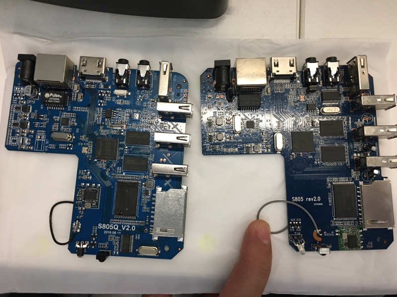 I open the devices and the hardware looks like similar (same processor S805) but in different revisions printed on board (S805 rev2.0 and S805Q_V2.0). The version S805 rev2.0 works and version S805Q_V2.0 not. The attachment of this message contains a picture of the boards.